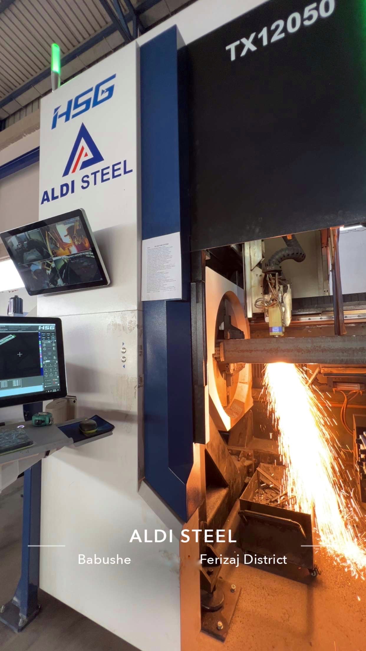 Aldi Steel is a company that specializes in metal processing and the construction of metal structures. The company is located in the industrial zone of Babush, Ferizaj, Kosovo. This location encompasses a total area of 25,000 m², of which 5,000 m² is dedicated to production facilities (factory), 1,200 m² to internal spaces (offices, utilities, changing rooms, laboratory), and 800 m² to administrative areas, a minibar, kitchen, and showroom.